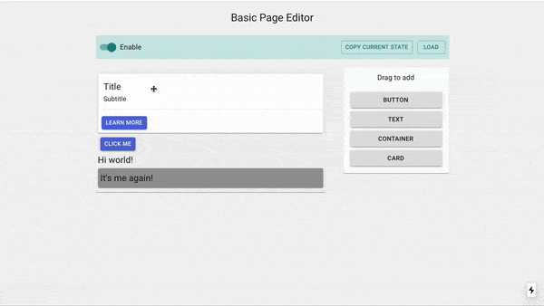 Now, play with the editor and press the Copy Current State button when you are done. Refresh the page so the editor returns to its default state, then press the Load State button and paste the copied output - you should see the editor displaying the elements in the state from the time you copied.
